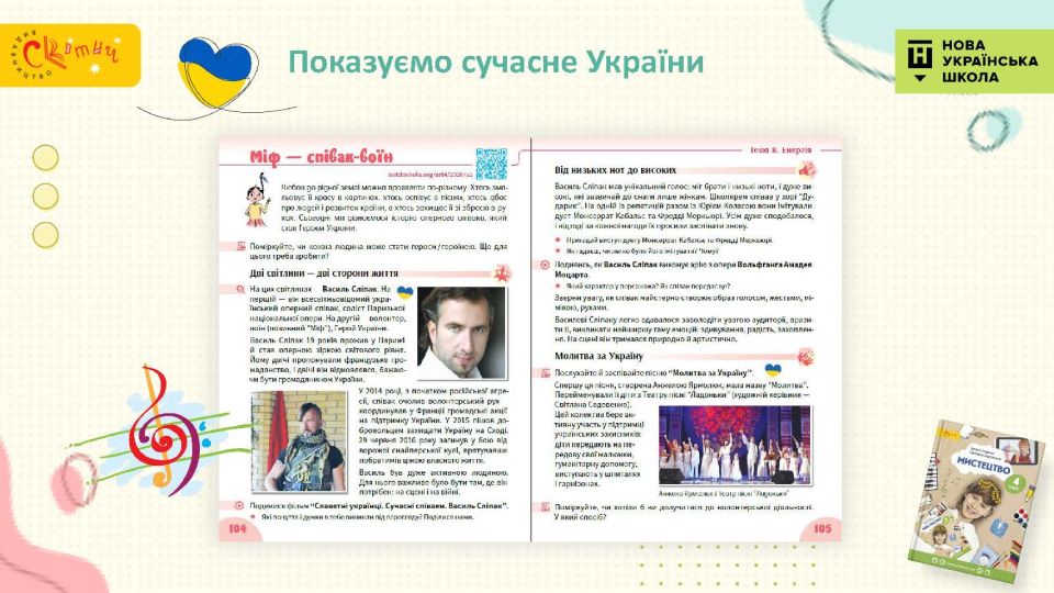 - З Україною в серці — підручник відкриває четвертокласникам багато імен українських митців, традиційні декоративні розписи тощо — це справжня мистецька мандрівка тривалістю в рік.