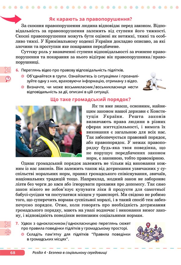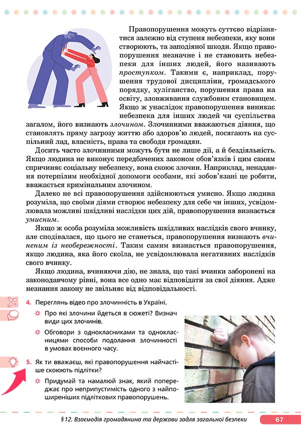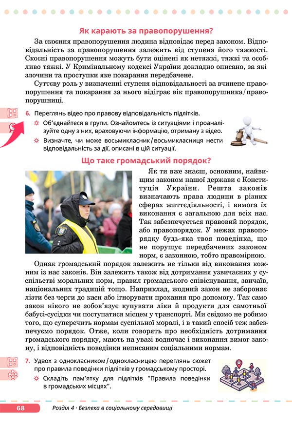 Насамкінець варто дати завдання для саморефлексії: “Які дії мої чи мого оточення можуть межувати з правопорушенням? Де пролягає межа між дрібним хуліганством і правопорушенням?”.