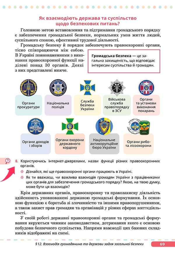 - Чи всі державні правоохоронні організації, символи яких ви бачите в підручнику, вам відомі?