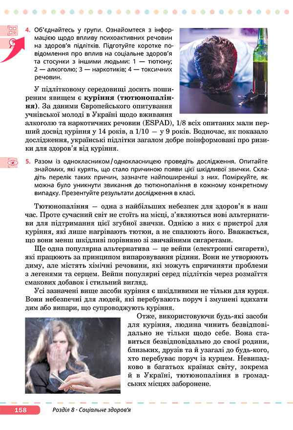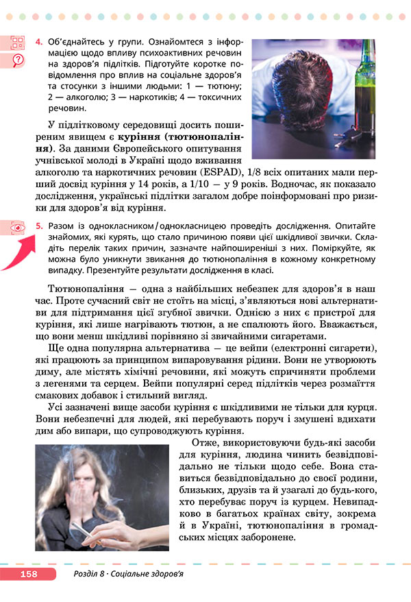 - Пояснити, наскільки негативно впливають психоактивні речовини на фізичне, психічне й репродуктивне здоров’я підлітків.