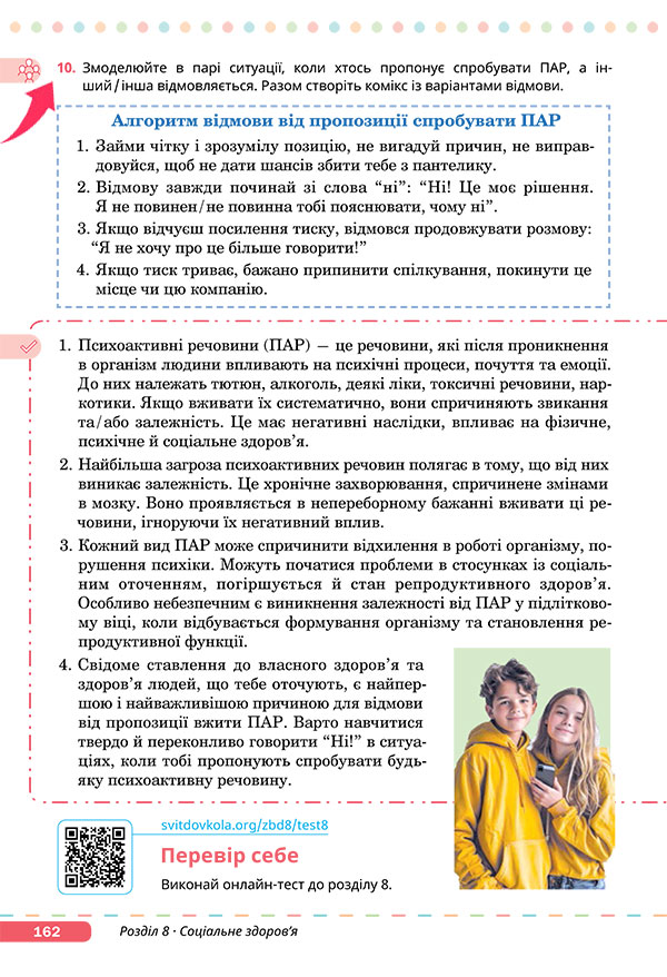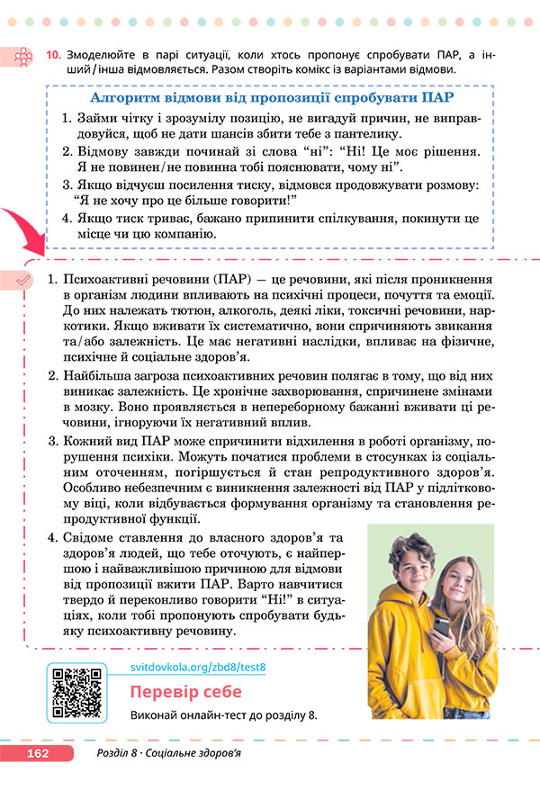 - розпізнає маніпуляції, рекламу й соціальний тиск, пов’язані з уживанням алкоголю, тютюну чи інших ПАР;