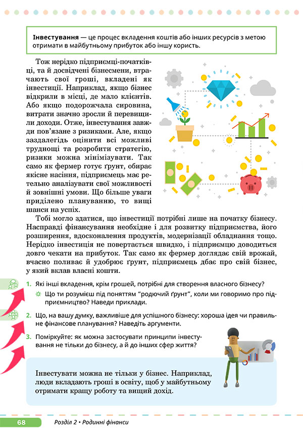 Інвестиції в бізнесі — Прочитайте текст на сторінці 68 підручника.
