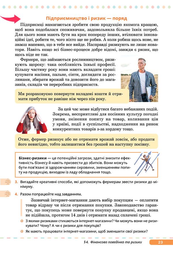 Дві сторони ризику — Прочитайте текст на сторінці 23 підручника. Дізнайтеся більше про фермерів України. ![]() ![]()