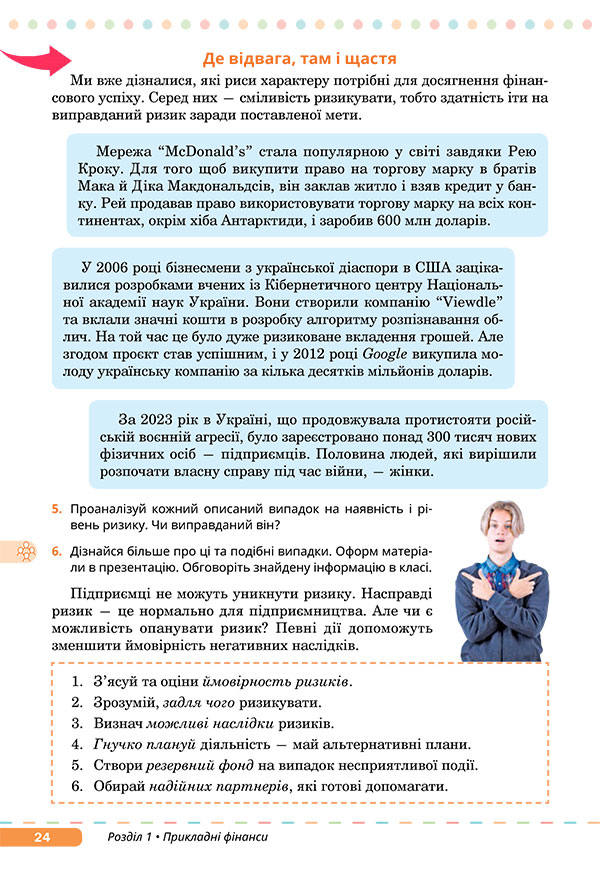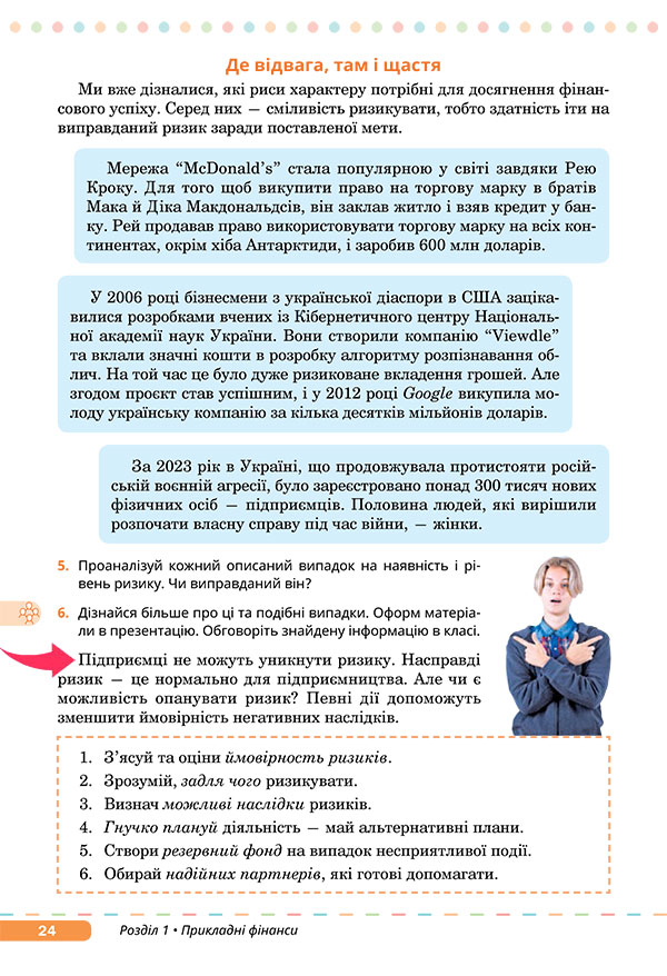 Зменшуємо фінансові ризики Прочитайте текст на сторінці 24 підручника з порадами про те, як зменшити фінансові ризики. Додайте 2‑3 власні поради. ![]() ![]() |