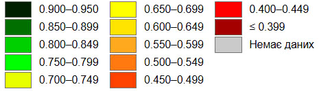 - 0.550 — 0.699 — середній рівень;