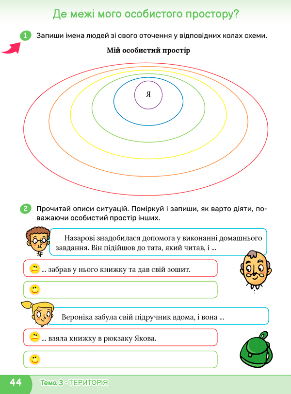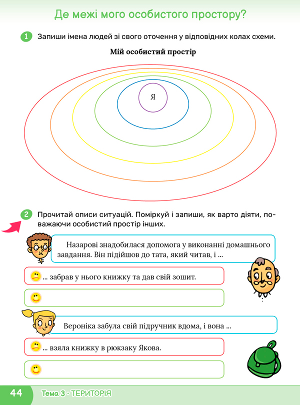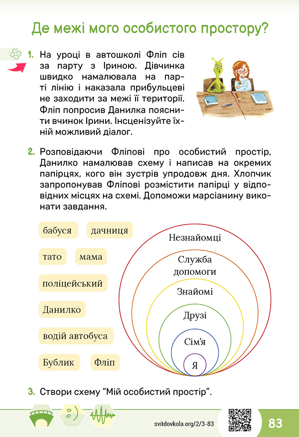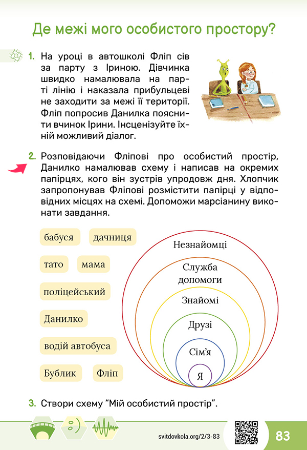 Розгляньте схему особистого простору в підручнику на с. 83 (завдання 2). ![]() ![]()