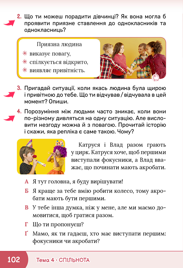 Сьогодні ми поговоримо про друзів та дружбу. Ми ще раз поміркуємо про риси характеру, які повинен мати справжній друг, дослідимо, як налагоджувати стосунки і вирішувати конфлікти, а ще — визначимо, як діяти, якщо хтось із дорогих друзів раптом пропонує… зробити щось погане. Вам уже цікаво? Тоді поїхали! |