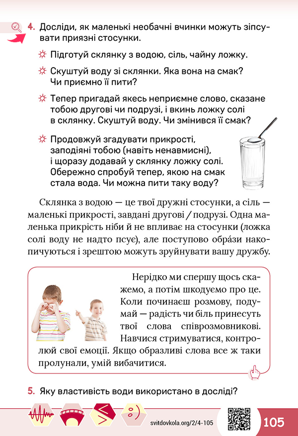 Виконайте завдання 4 на с. 105. Виконайте дослід. Обговоріть із однокласниками та однокласницями, а також близькими. ![]() ![]() |