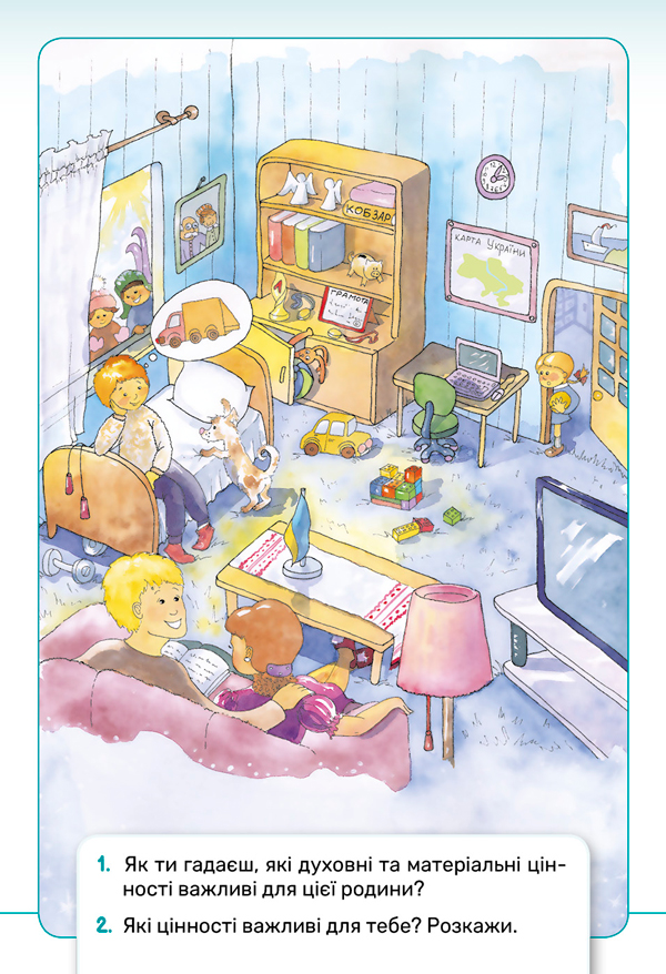 Розглянь на с. 5 підручника, як сучасна художниця Ксенія Свістунова зобразила цінності хлопчика Захара. ![]() ![]() Завантажте презентацію, щоб все докладно роздивитися. ЗАВАНТАЖИТИ Е-ВЕРСІЮЗапитання для обговорення: