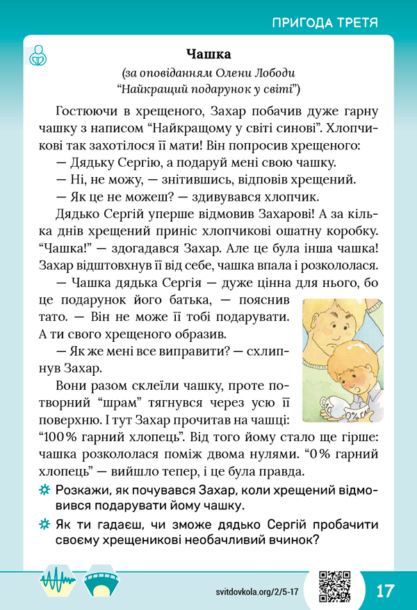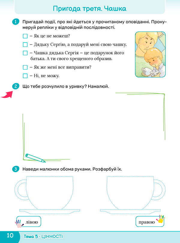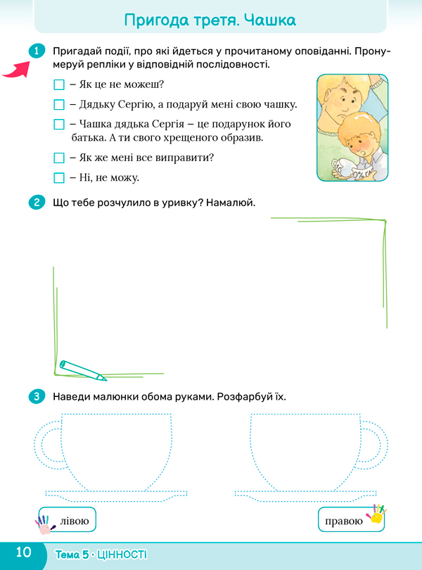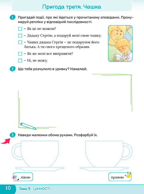 Прочитай пригоду третю “Чашка” (див. підручник на с. 17). ![]() ![]() |