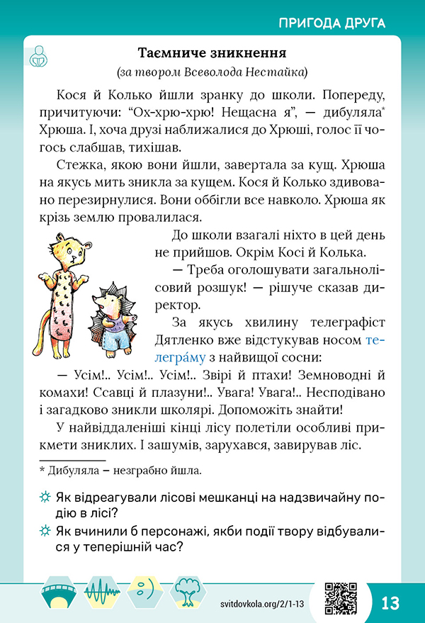 Сьогодні ми продовжимо знайомитися з персонажами лісової школи Всеволода Нестайка. Прочитаємо наступну їхню пригоду. |