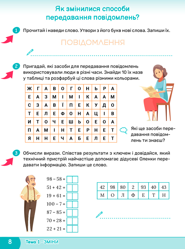 Розгляньте світлини. Повідомлення яких типів отримали люди? ![]() ![]() ![]() Для роботи із повідомленнями людина використовує різні пристрої, які допомагають їй отримувати, обробляти, зберігати та передавати повідомлення. Інформація передається за допомогою повідомлень. Давні люди фіксували повідомлення у вигляді малюнків на скелях. Наприклад, про вдалі місця для полювання. Згодом, із появою писемності, люди почали писати на папірусі та пергаменті. Часто для передавання повідомлень використовували спеціальних людей, які вміли швидко бігати, — гінців. Використовували також поштових голубів, які переносили листи. Є й інші способи передання повідомлень. Наприклад, про повітряну тривогу сповіщає гучна сирена, що лунає над містом. А ось наші предки, запорізькі козаки, для передавання повідомлень про небезпеку використовували сигнальні вогнища і дзвони. Справжню революцію в усьому світі спричинило винайдення друкарського верстата, адже відтак стало можливим передати одне текстове повідомлення великій кількості людей. З’явилося безліч газет, журналів, книг. Пізніше виникли телеграф, телефон, радіо і телевізор. Сьогодні існують технології, які дозволяють миттєво передавати повідомлення на будь-які відстані: мобільний зв’язок, інтернет. |
