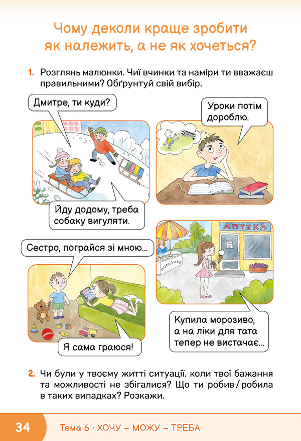 Розгляньте малюнки на с. 34 підручника. Чиї вчинки та наміри ви вважаєте правильними? ![]() ![]()