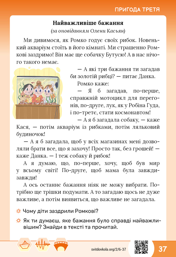 Прочитайте пригоду “Найважливіше бажання” на с. 37 підручника. ![]() ![]() |