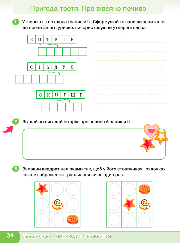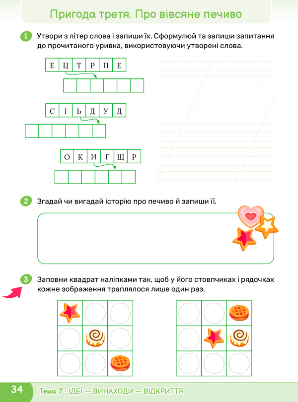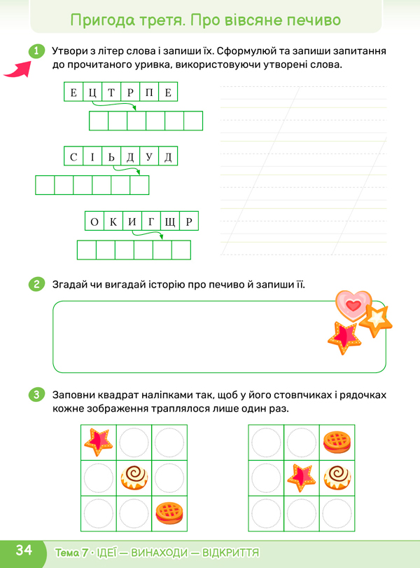 Виконайте завдання 1 на с. 34 свого робочого зошита: утворіть з літер слова й запишіть їх. ![]() ![]()