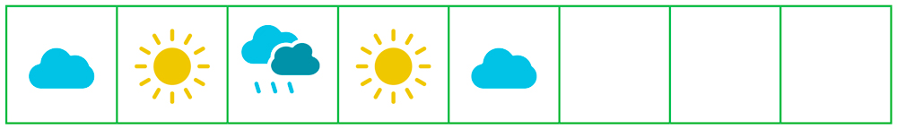 Друг Катрусі Ярослав запропонував їй на вихідних попускати сонячні зайчики. Розглянь прогноз погоди (Зошит для діагностувальних робіт, с. 36, завдання 7). ![]()