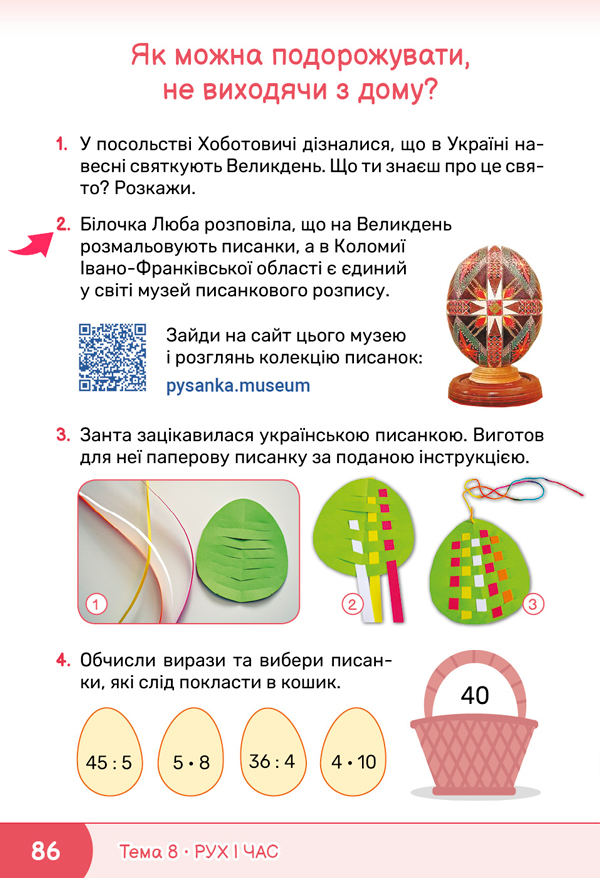І наостанок — математичні писанки — завдання 4 на сторінці 86 підручника. ![]() ![]() |