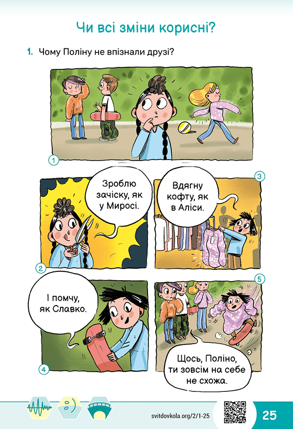 Роздивіться комікс на с. 25 підручника. Прочитайте виразно репліки персонажів. ![]() ![]() Завантажте презентацію, щоб все докладно роздивитися. ЗАВАНТАЖИТИ Е-ВЕРСІЮЗапитання для обговорення: