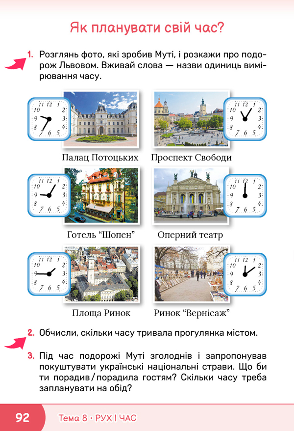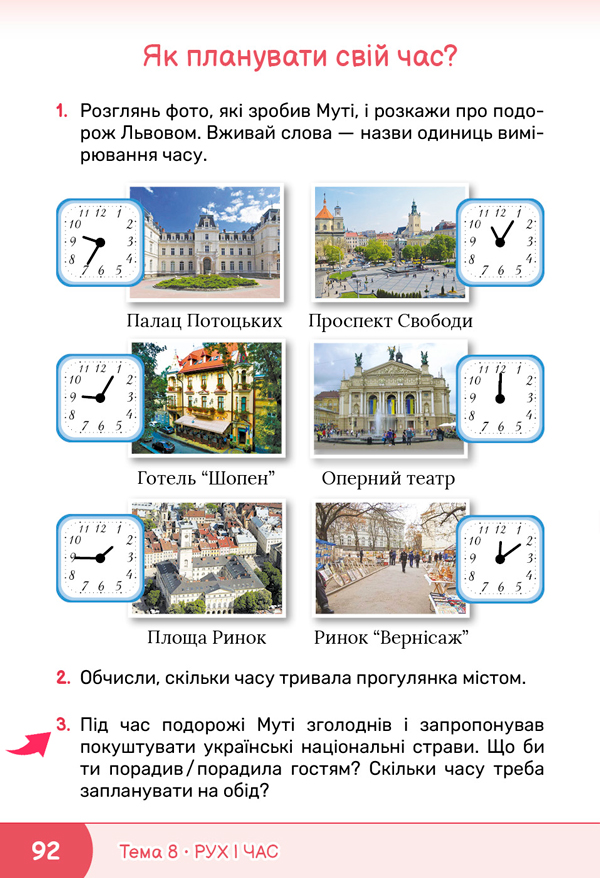 Ви ж пам’ятаєте, що час треба берегти? А сьогодні ми навчимося ще й ретельно планувати час, подивимося, як свій час планували Хоботовичи і дізнаємося чи багато вони встигли побачити у Львові завдяки такому плануванню, а потім ще й встигнемо зробити книжечку. Тож не гаємо час і розпочинаймо урок! |