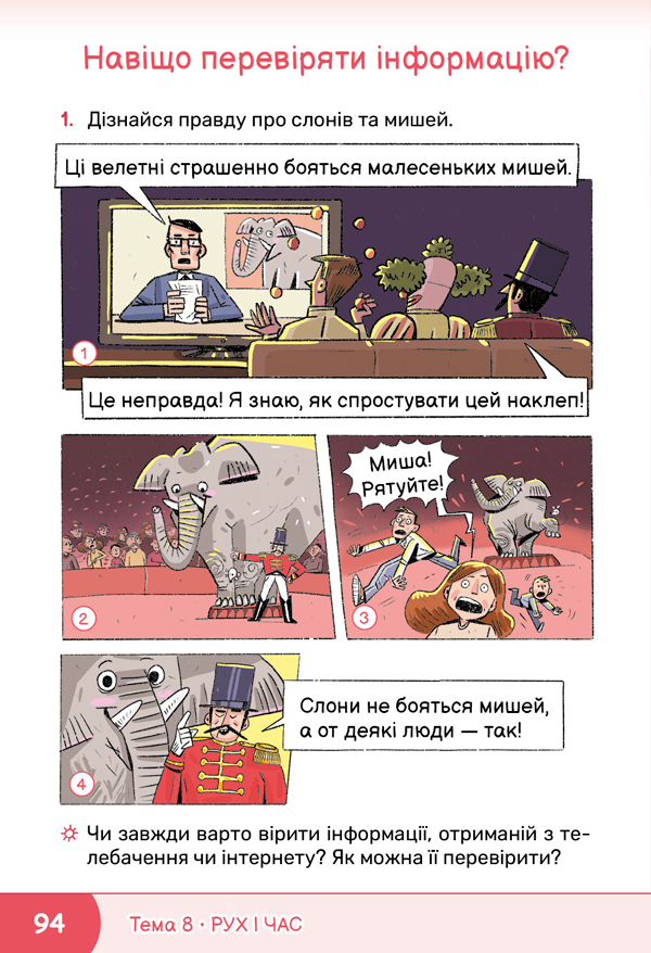 Відкрийте підручник на сторінці 94 та уважно роздивіться комікс “Правда і чутки”. Можете скористатися е-версією коміксу. ![]() ![]() Завантажте презентацію, щоб все докладно роздивитися. ЗАВАНТАЖИТИ Е-ВЕРСІЮЗапитання для обговорення: