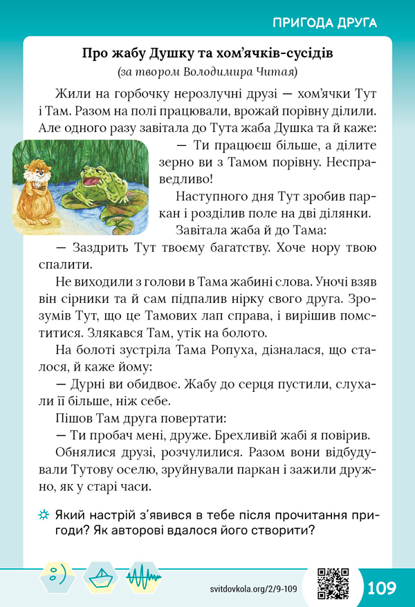 УРОК 1. Пригода друга. Про жабу Душку та хом’ячків-сусідів