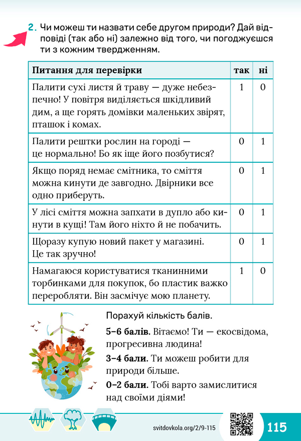 Виконайте завдання 2 на сторінці 115 підручника і дізнайтеся чи можна вас назвати другом Землі. ![]() ![]()