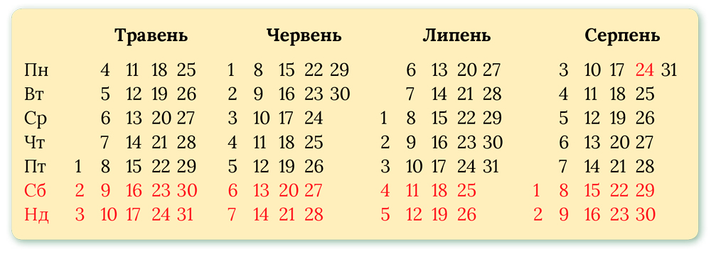 Визнач за календарем, скільки днів триватимуть літні канікули. Через скільки днів вони почнуться? (Зошит для діагностувальних робіт, с. 45, завдання 2.) ![]() |