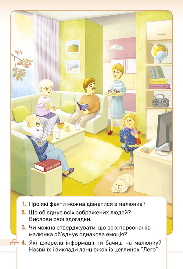 Уважно погляньте на картину на с. 35 підручника. З яких джерел тато та дідусь дівчинки отримують інформацію?