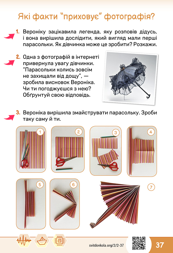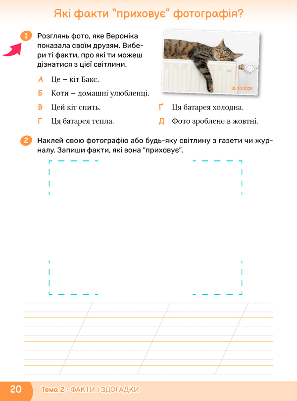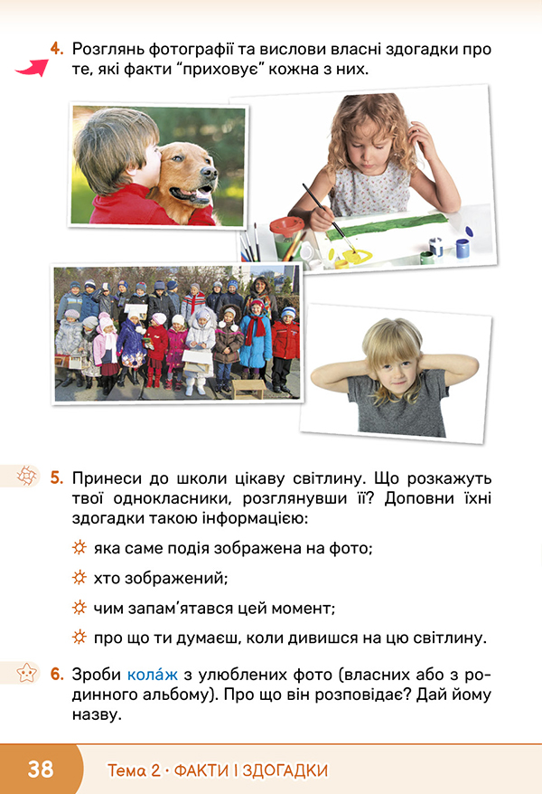 Розгляньте фото на с. 38 підручника. Висловіть власні здогадки про те, які факти приховує кожна з них. Що із зображеного на фотографіях змусило вас так думати? ![]() ![]() |