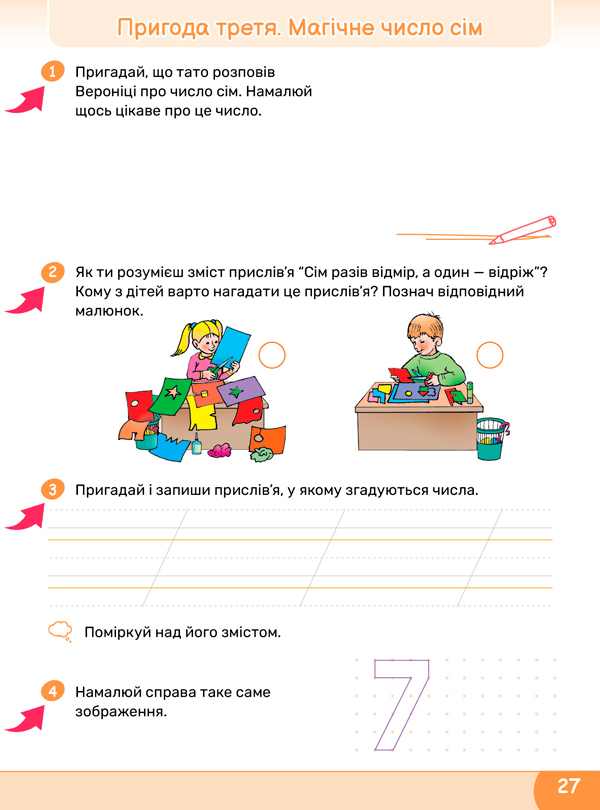 Запишіть цифру 7. Напишіть навколо неї всі факти, які пов’язані з цим числом у вашому житті (номер будинку, дні народження родичів…).