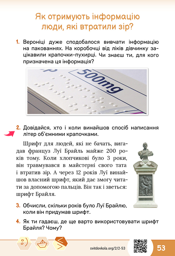 Прочитайте текст на с. 53 підручника (завдання 2) та дізнайтеся, хто придумав такий шрифт. ![]() ![]() |