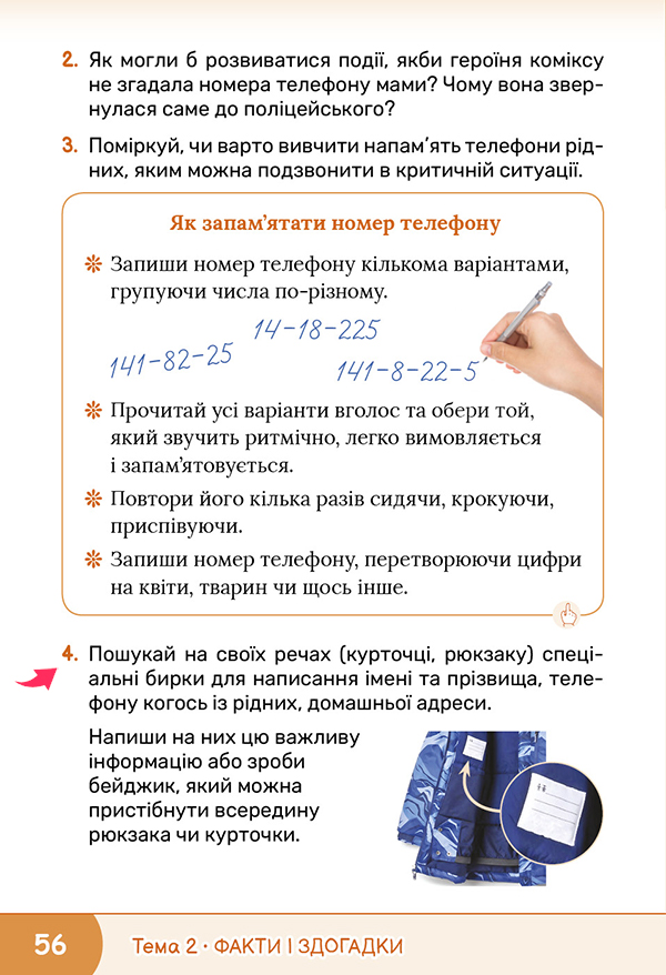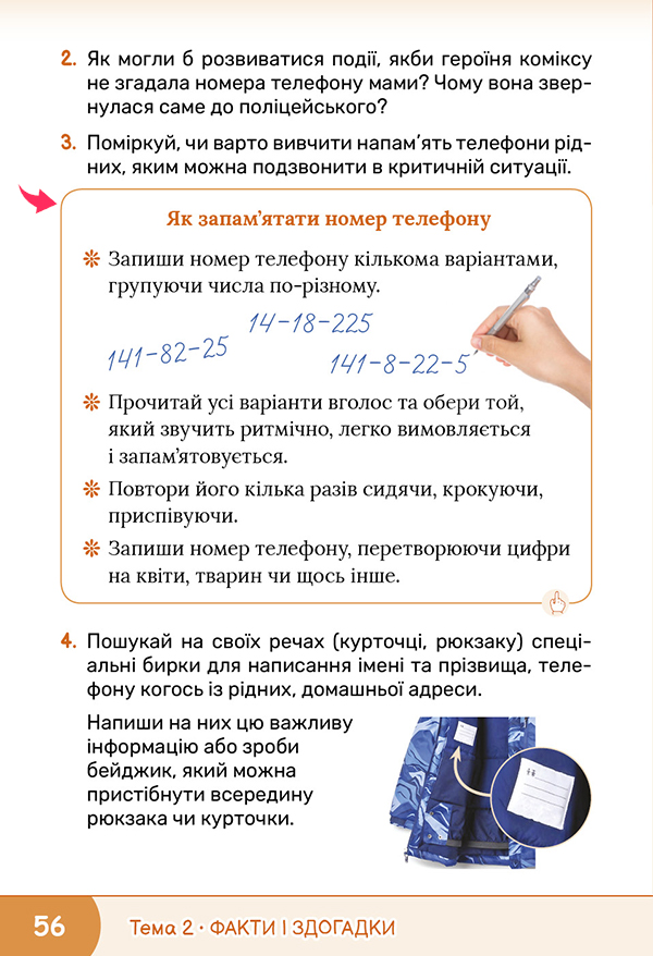 Прочитай пораду як запам’ятати номер телефона на с. 56 підручника. ![]() ![]()
