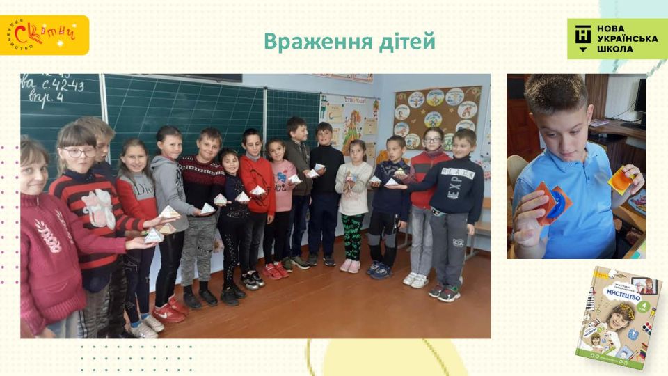 - Захопливо й зрозуміло розповідаємо четвертокласникам про мистецтво навколо, кожний урок — нова мистецька історія.