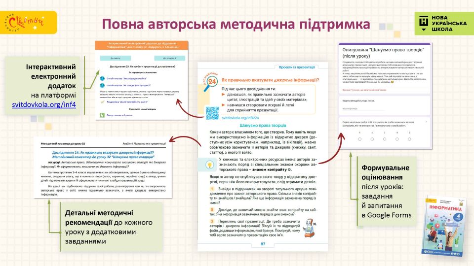 - Повний методичний супровід на SvitDovkola.org — методичні матеріали, презентації, розробки уроків, безоплатні навчальні вебінари та курси підвищення кваліфікації для вчителів.