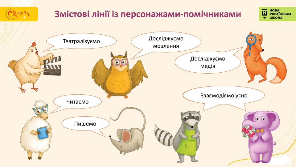 - мотиваційні діалоги веселих персонажів підручника, які допомагають досліджувати мовні явища;