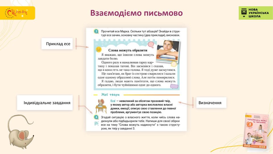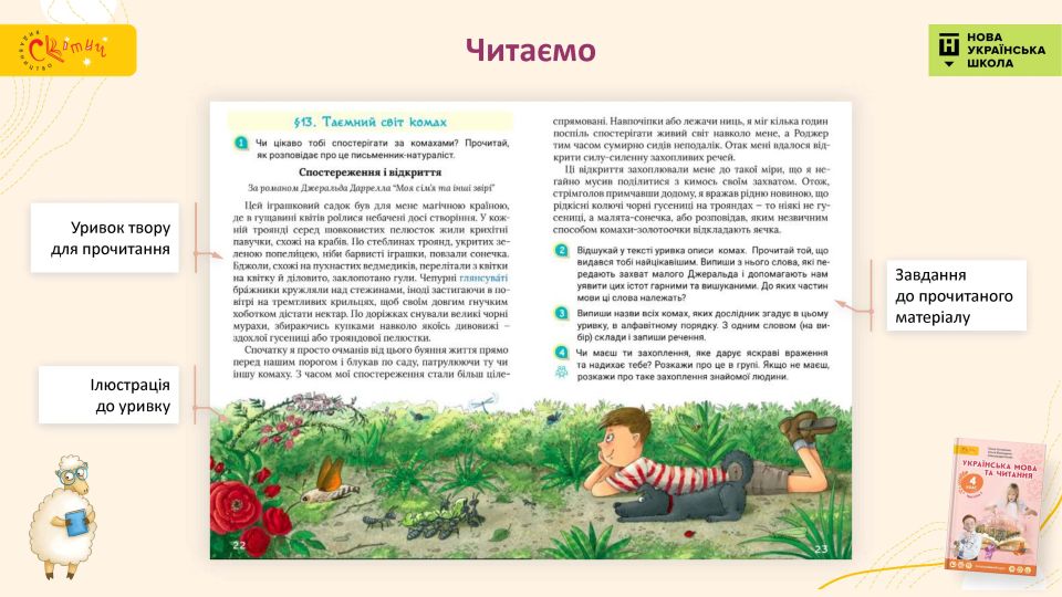 У текстів підручника патріотичний та сучасний зміст. Ми не уникаємо складних тем, але подаємо їх так, щоби підтримати, а не травмувати дитину.