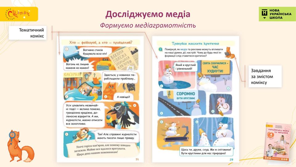 Для критичного освоєння комунікативного медіасередовища учням пропонуються завдання від персонажа Медійки.
