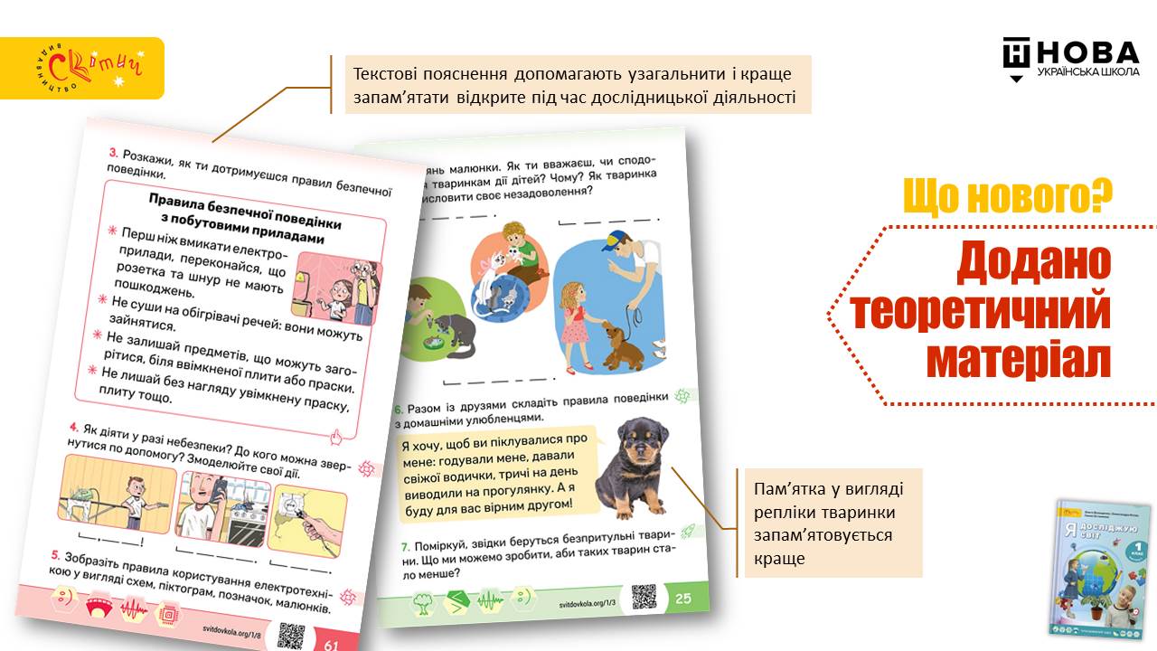 - теоретичні блоки, зокрема рубрику “Зверни увагу”, що допомагають систематизувати знання, які діти вже відкрили для себе під час виконання дослідницьких завдань, і — отже — краще їх опанувати;