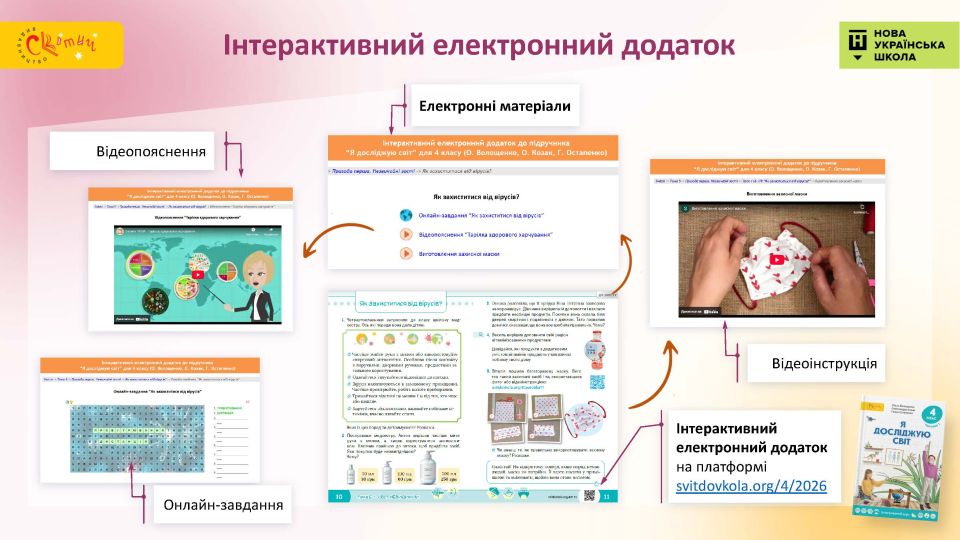 - Електронний інтерактивний додаток — онлайн-завдання для учня, відеоролики, інтерактивні версії сюжетних малюнків і коміксів — все для цікавого й ефективного навчання.