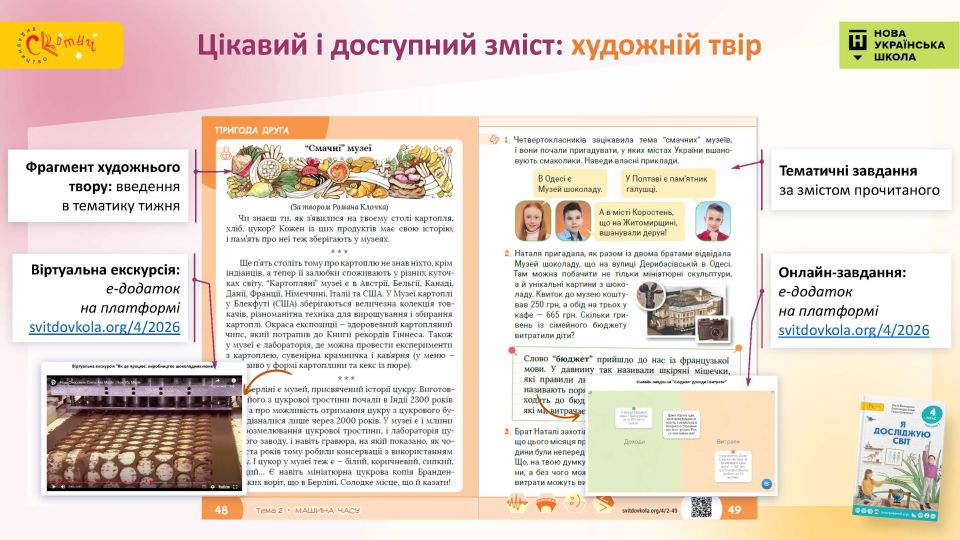 - Сучасний підручник для сучасної дитини — усі тексти близькі й зрозумілі четвертокласникам.