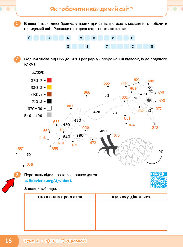 З’єднайте числа від 655 до 681 і розфарбуйте зображення відповідно до поданого ключа (зош. с. 16, завд. 2).