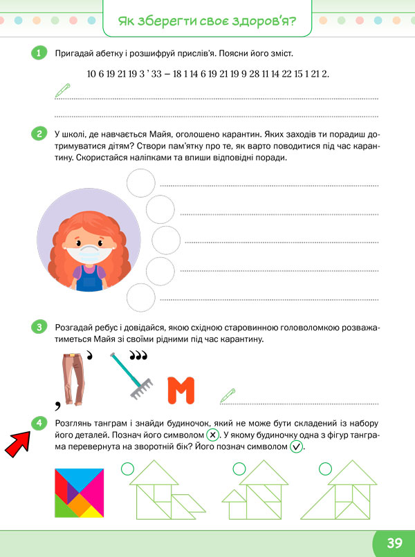 Розгадайте ребус і довідайтеся, якою східною старовинною головоломкою буде розважатися Майя зі своїми рідними під час карантину (зош., с. 39, завд. 3).