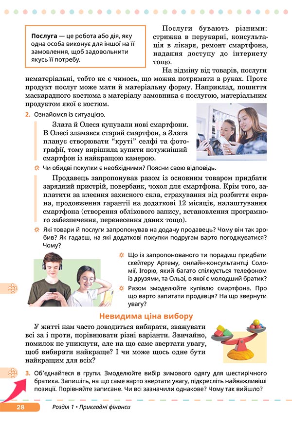 Насправді найголовніше при купівлі — усвідомлювати, що не можна просто витрачати гроші. Варто обміркувати купівлю, зважити всі за і проти. А тепер дізнаймося, на що ми витрачаємо гроші, що таке товар і послуга та які покупки є необхідними, а які бажаними. |