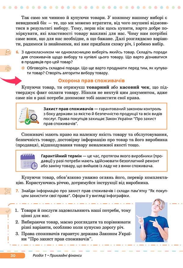 Захист прав споживачів (робота групами) — Прочитайте текст на сторінці 30 підручника. ![]() ![]()