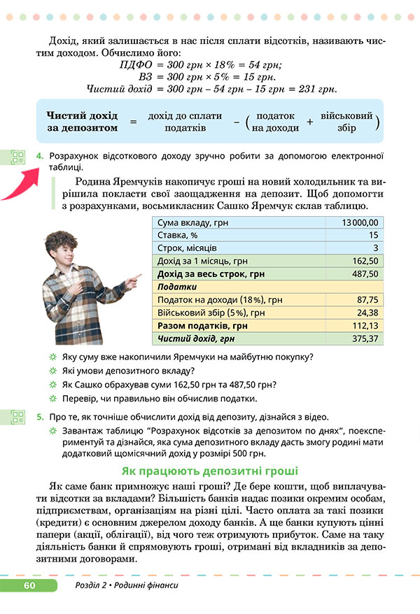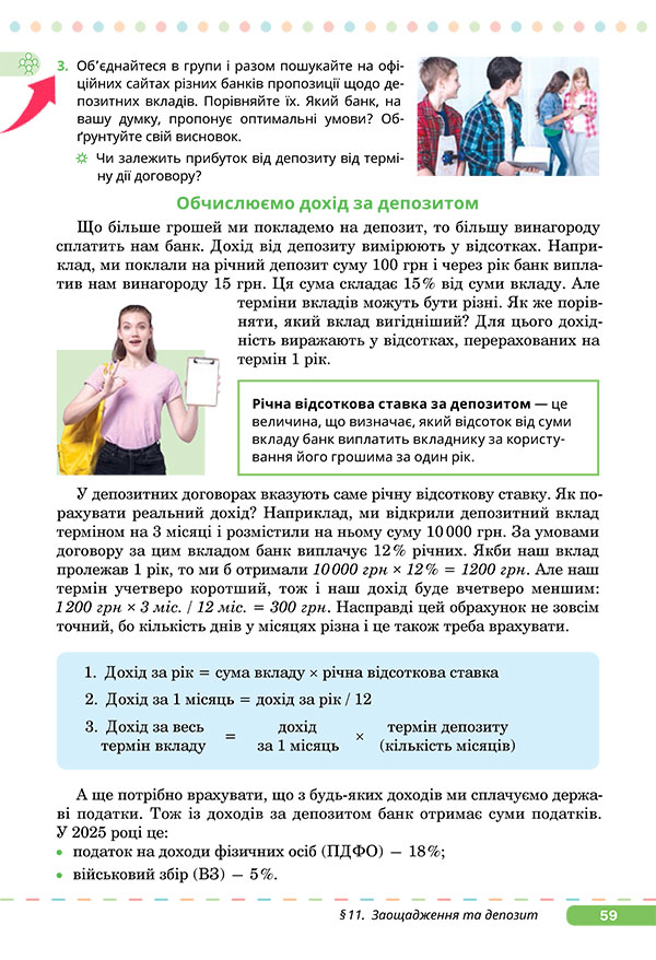 - використовує онлайн-калькулятори для оцінювання кінцевої суми вкладу, що передбачає складні відсотки;