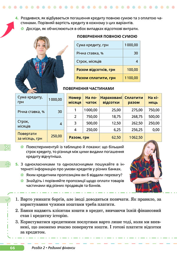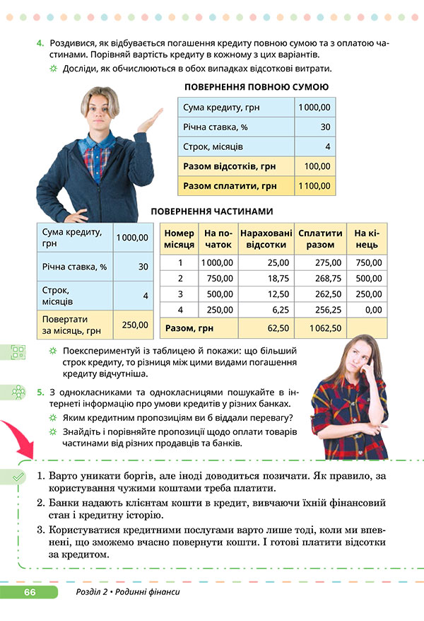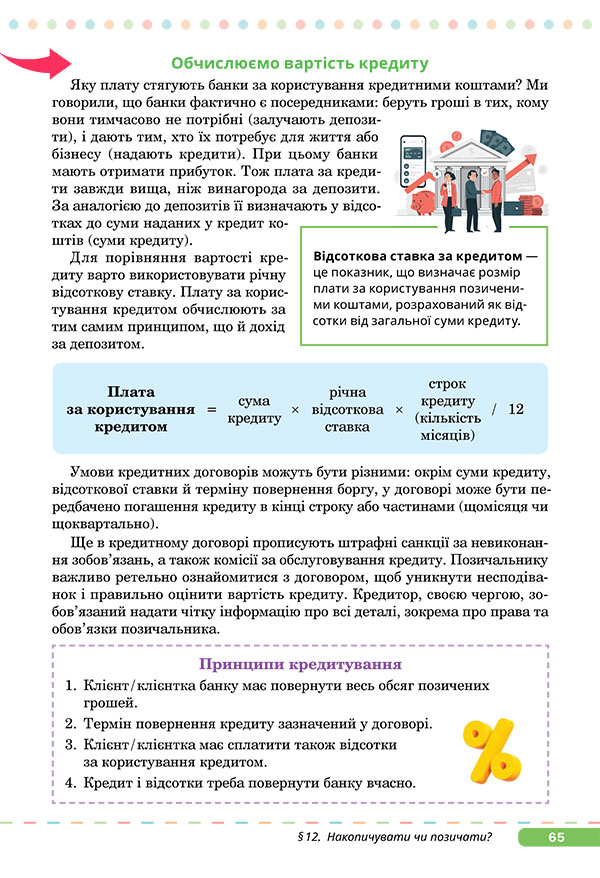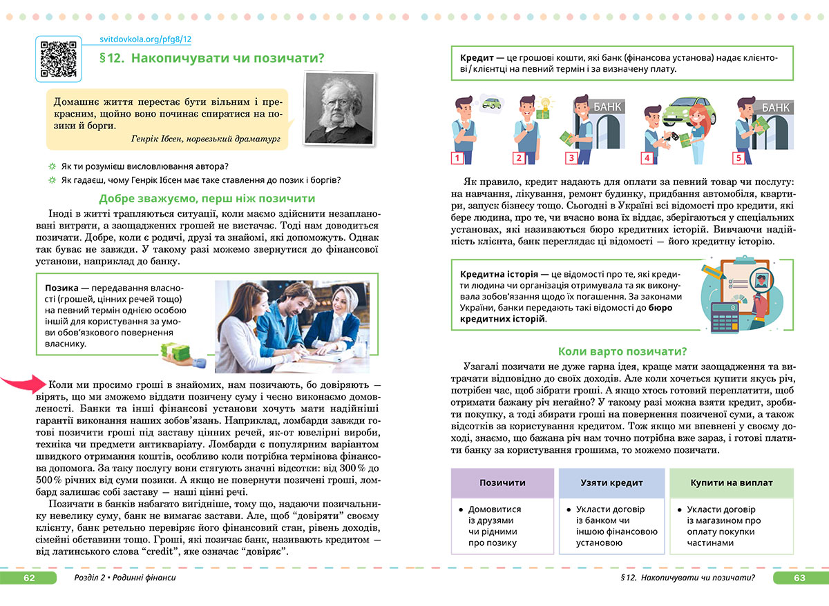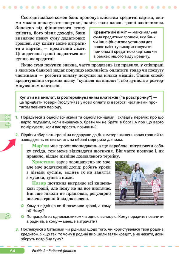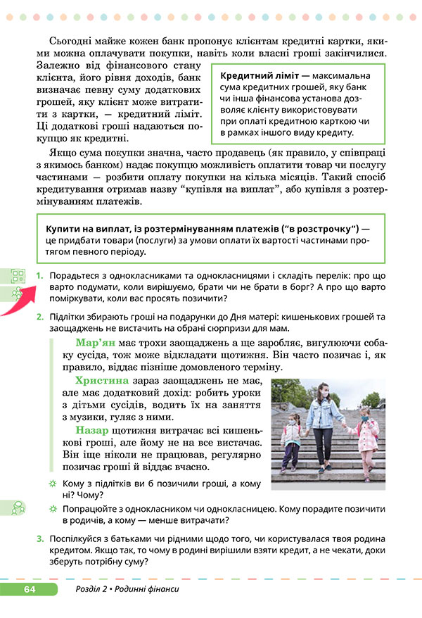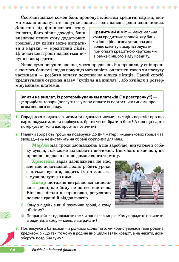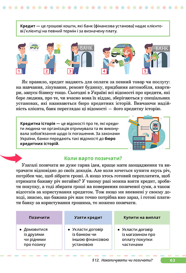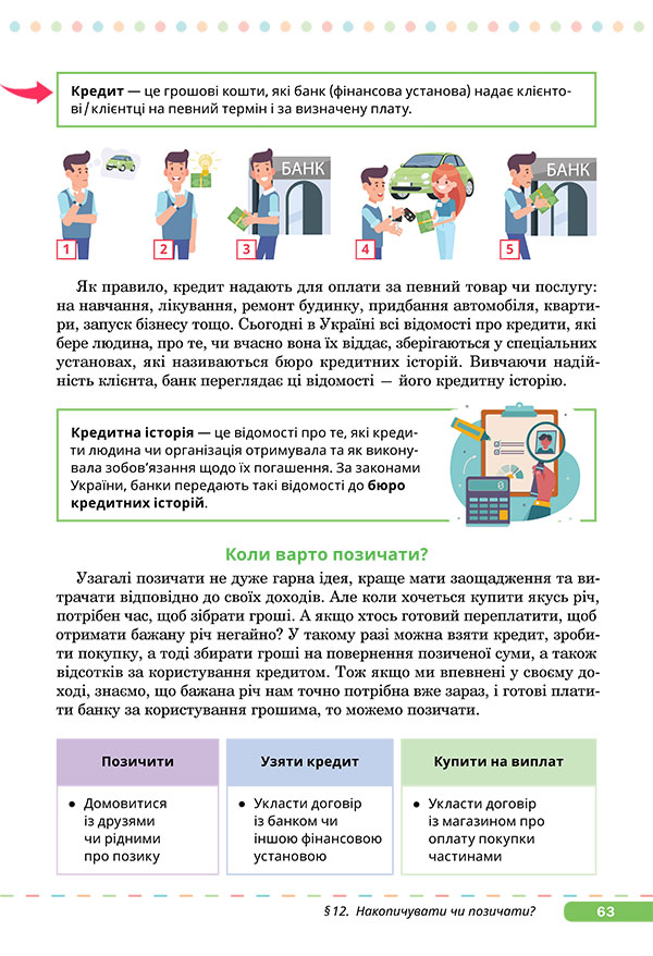 Кредит — Прочитайте, що таке кредит на сторінці 63 підручника.