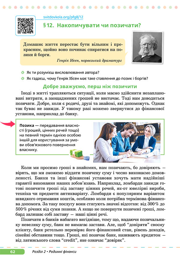 Міркуємо та аналізуємо — Прочитайте висловлювання Генріка Ібсена: “Домашнє життя перестає бути вільним і прекрасним, щойно воно починає спиратися на позики й борги”.