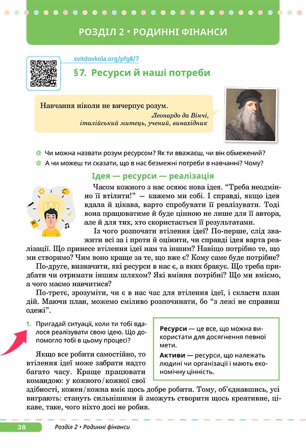 - підручник “Підприємництво і фінансова грамотність” 8 клас;