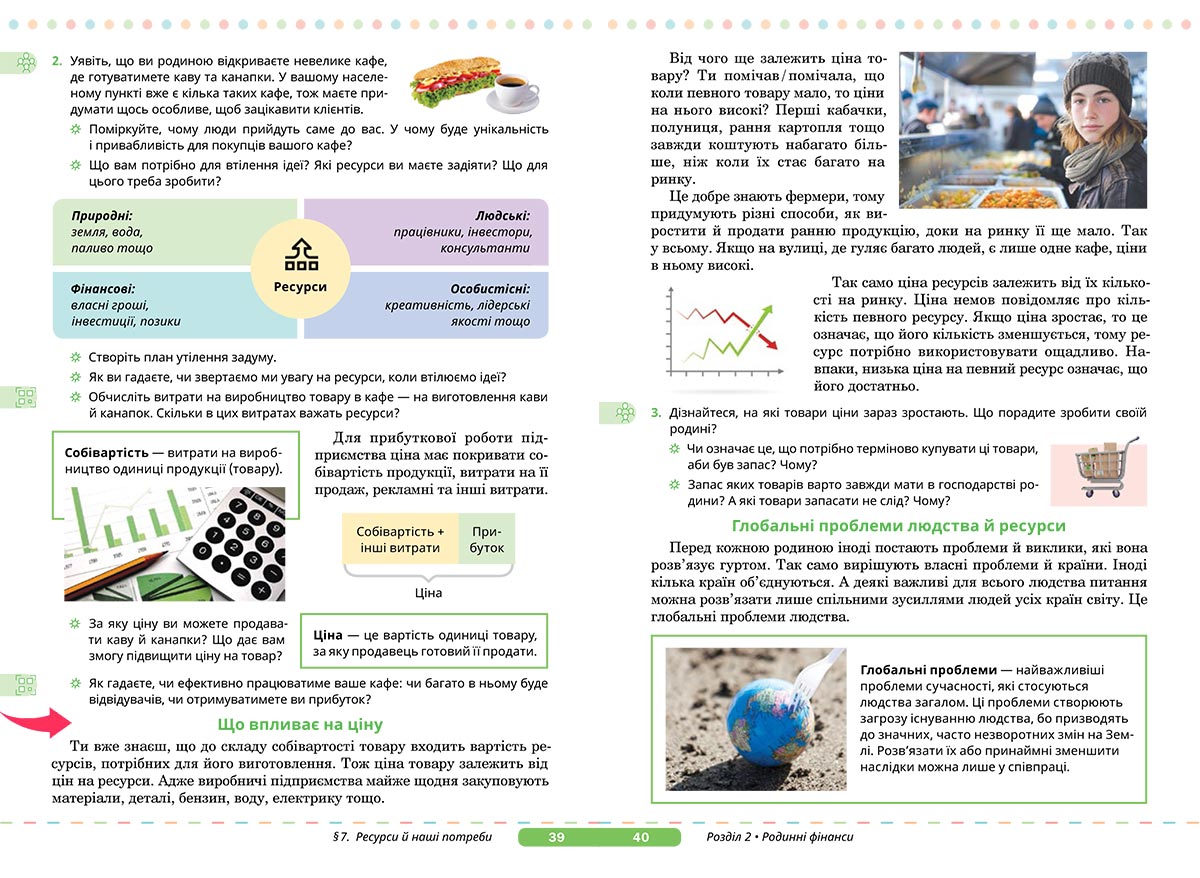 Квест “Власне кафе” (робота онлайн-групами) Попрацюємо разом. У кожного з вас є своя ідея, і якщо ви їх об’єднаєте, отримаєте класний результат. Головне — слухайте одне одного та підтримуйте. Почнімо! Об’єднайтеся в три групи та виконайте завдання 2 на сторінці 39 підручника (див. роздруківку “Розрахунок собівартості кави і канапок”). Ваше завдання — придумати, як залучити клієнтів та зробити ваше кафе популярним та унікальним. ![]() ![]() |