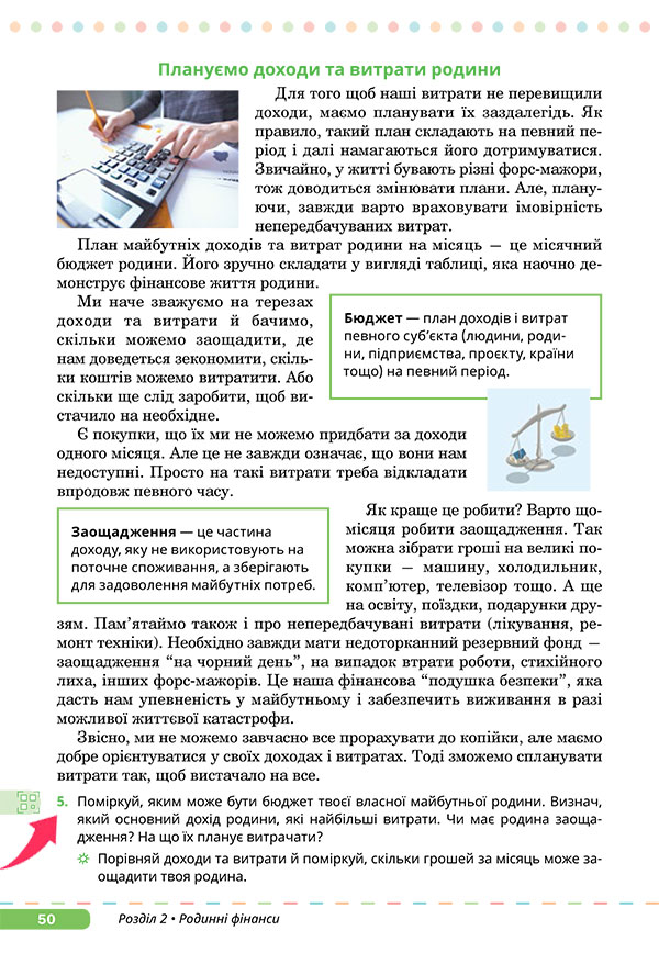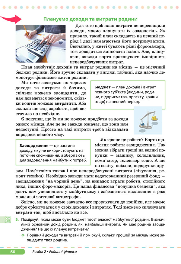 Плануємо бюджет — Прочитайте текст на сторінці 50 підручника.